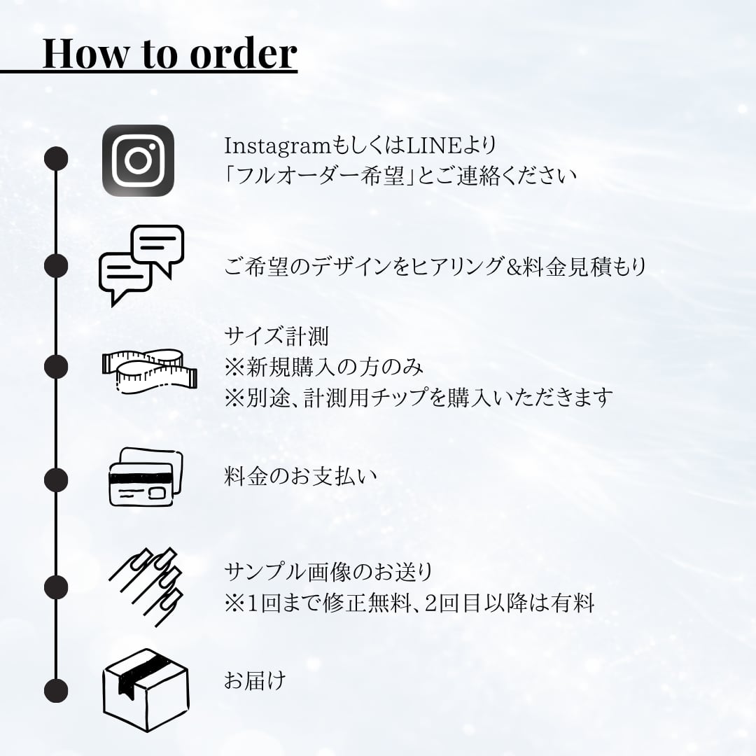 ① InstagramもしくはLINEで「フルオーダー希望」とご連絡ください